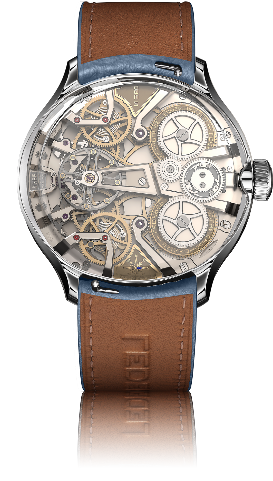By inverting the movement, the watch becomes a canvas of structures and reflections, where light glides across bridges, wheels and impulses, shaping an ever-changing landscape. Every angle reveals a different perspective, every glimpse uncovers a new layer of its choreography.